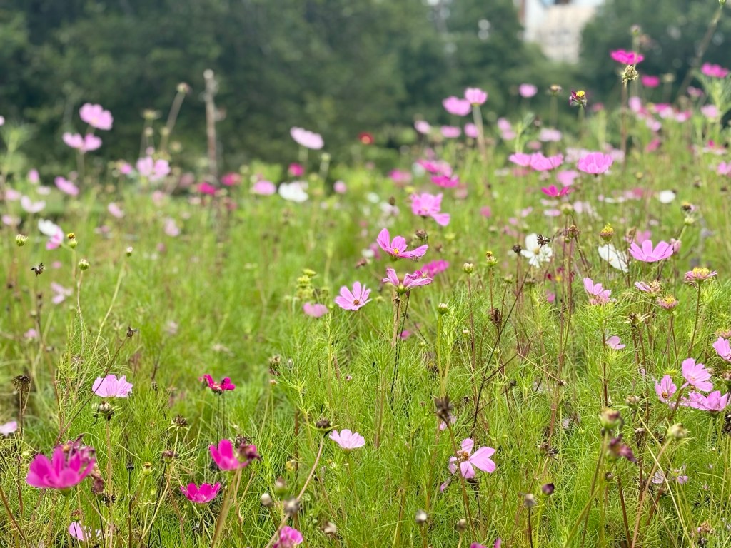 In the field of flowers a distant memory of summer a photo from my mother a gift from the future from the southern hemisphere the pure joy of flowers their colors light up under the cloudy day the warmth of weather allows them to stay a delight I admire a pure warmth of my soul as snow falls out my window in the present.