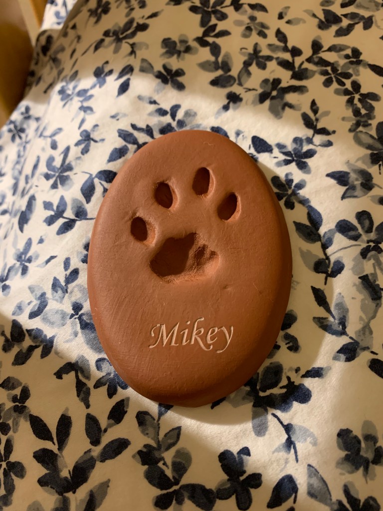 Yesterday, my mom got an unexpected voicemail from the vet. They told us we could come pick up Mikey’s paw print. We weren’t expecting to get a paw print and to say it made us cry is an understatement. Grief over a pet that was in my daily life comes in waves. He was and will forever be the best cat ever.